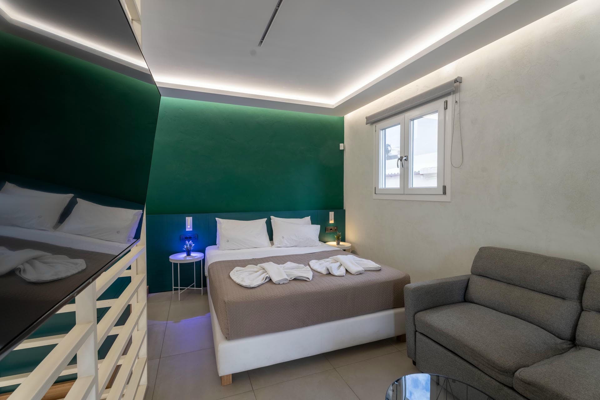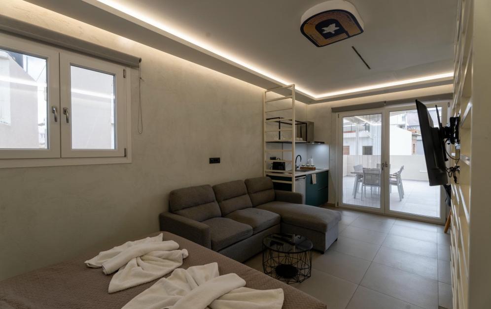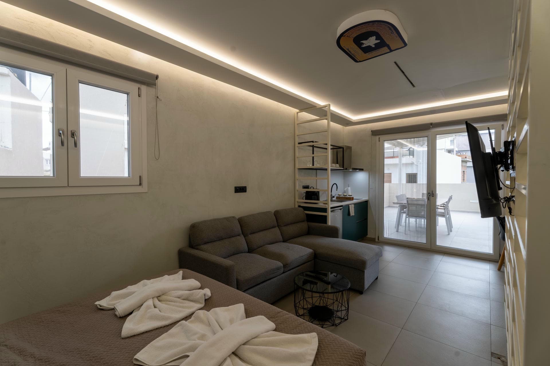 Ζήστε την απόλυτη χαλάρωση στο πιο ευρύχωρο διαμέρισμά μας. Σχεδιασμένο για όσους θέλουν να συνδυάσουν τη ζωή στην πόλη με την αίσθηση ιδιωτικού θέρετρου, το Terrace Penthouse προσφέρει 40 τ.μ. εσωτερικού-εξωτερικού χώρου στην καρδιά του Ηρακλείου.