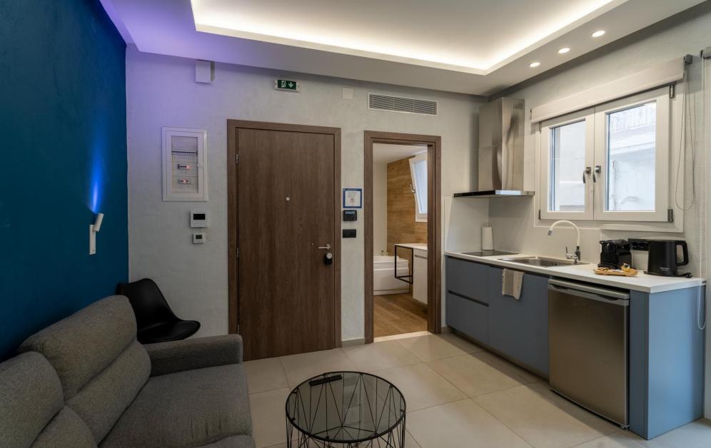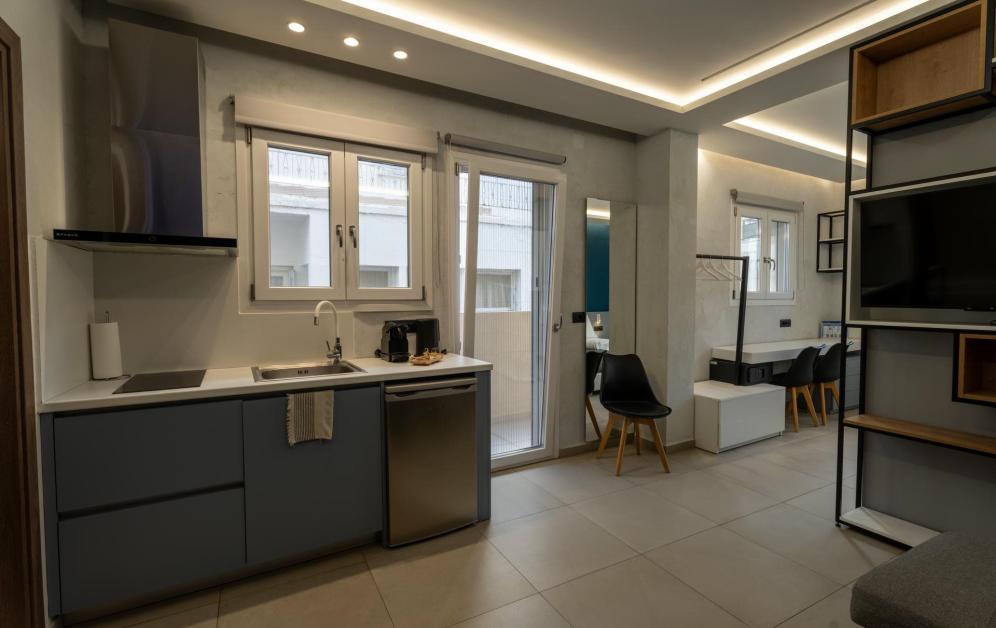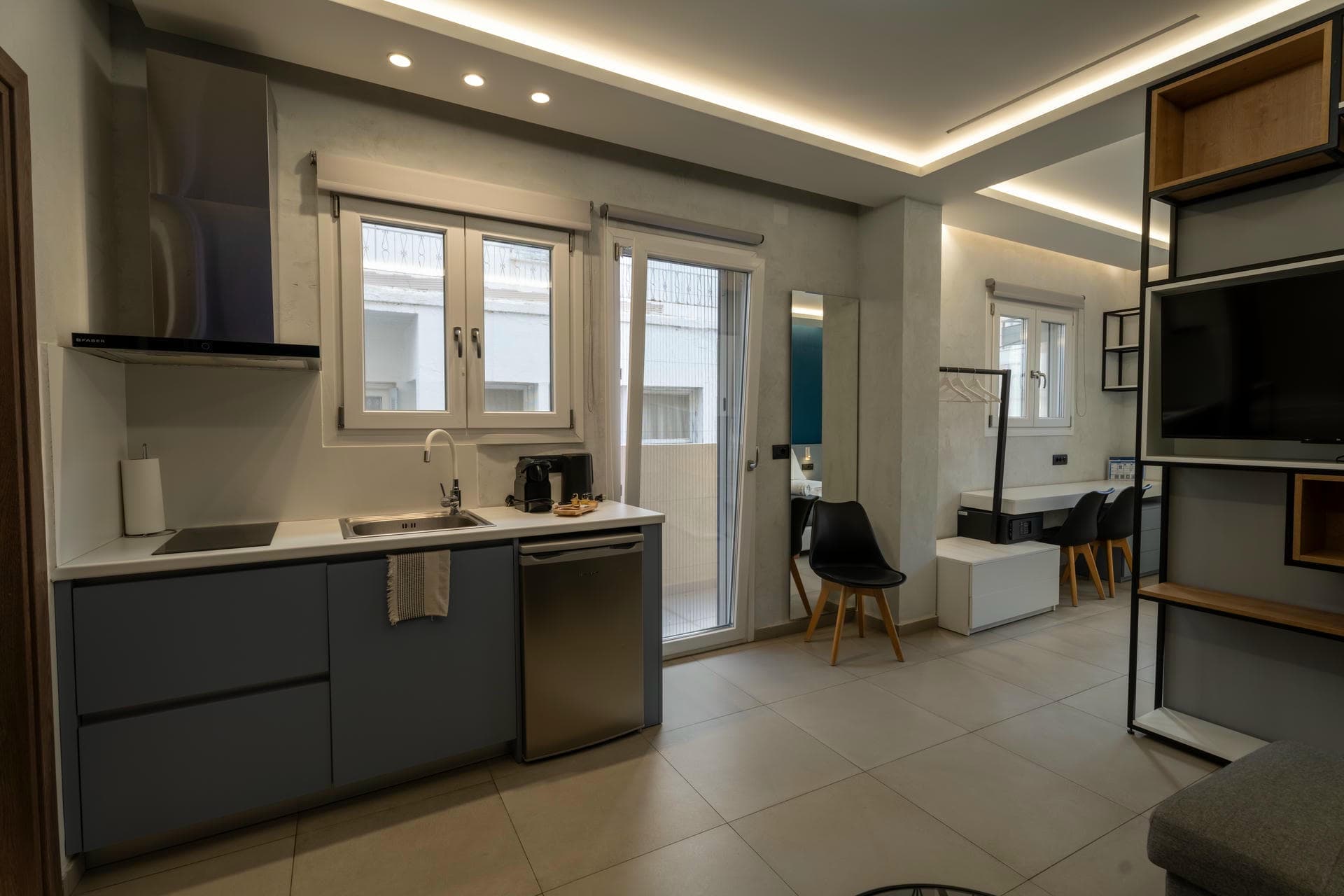 - Πλήρης Παροχές: Υψηλής ποιότητας μικρή κουζίνα με εστία, καφετιέρα espresso και όλα τα απαραίτητα σκεύη κουζίνας.